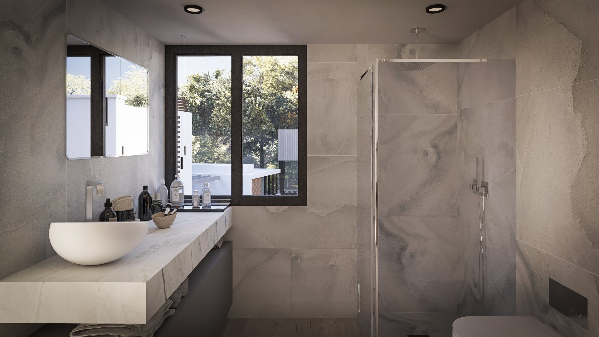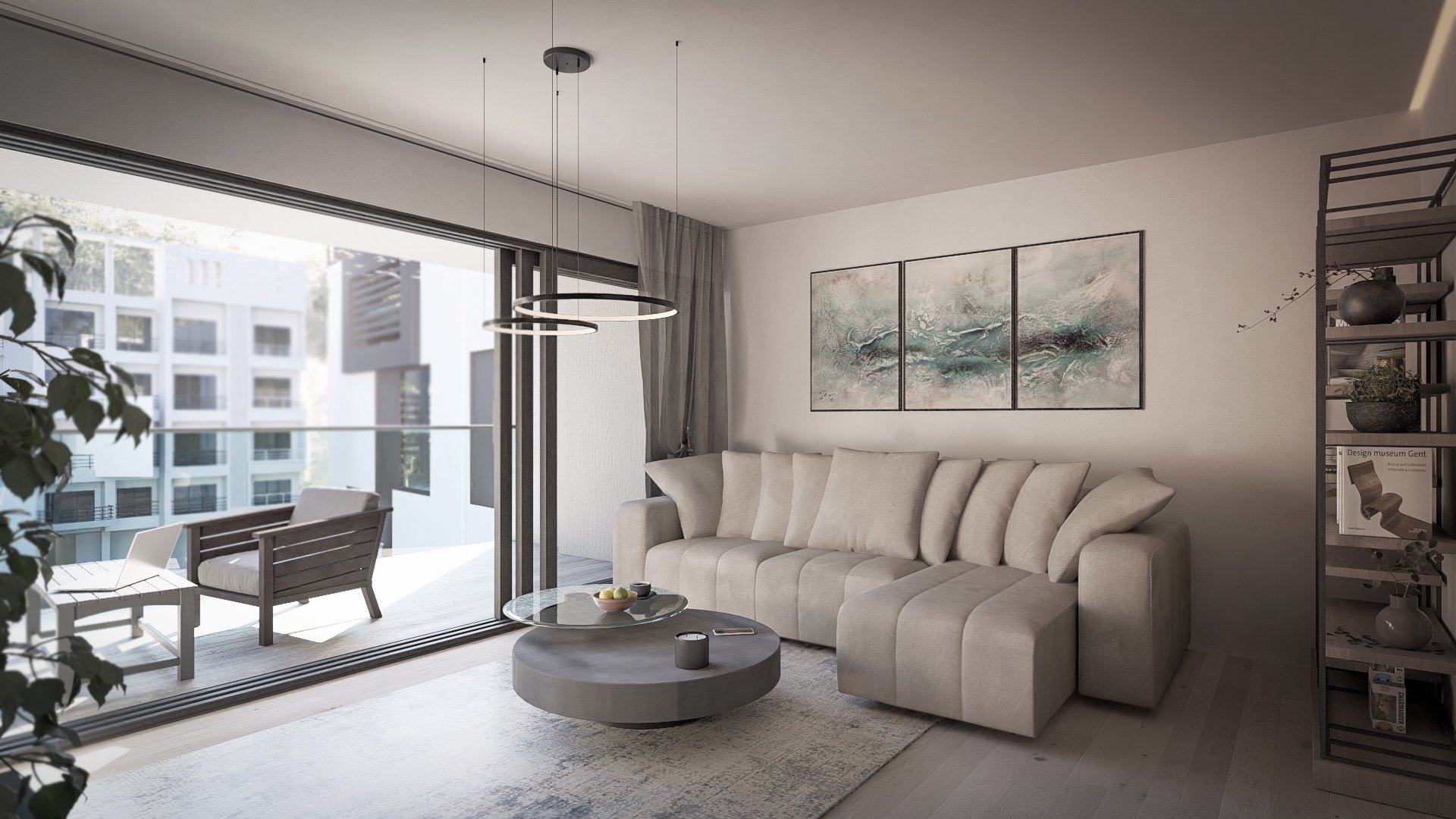 Διατηρήσαμε τον αστικό χαρακτήρα της πρόσοψης, προσθέτοντας θερμότητα και ρυθμό μέσα από κάθετα ξύλινα στοιχεία και ήπιες υλικές αντιθέσεις.Το τελικό αποτέλεσμα είναι καθαρό, λιτό και μοντέρνο. Κάθε μπαλκόνι επανασχεδιάστηκε ως μεταβατικός χώρος, με συρόμενες πόρτες πλήρους ύψους που εξαφανίζονται εντελώς, επιτρέποντας στο καθιστικό να «ξεχύνεται» προς την πόλη.