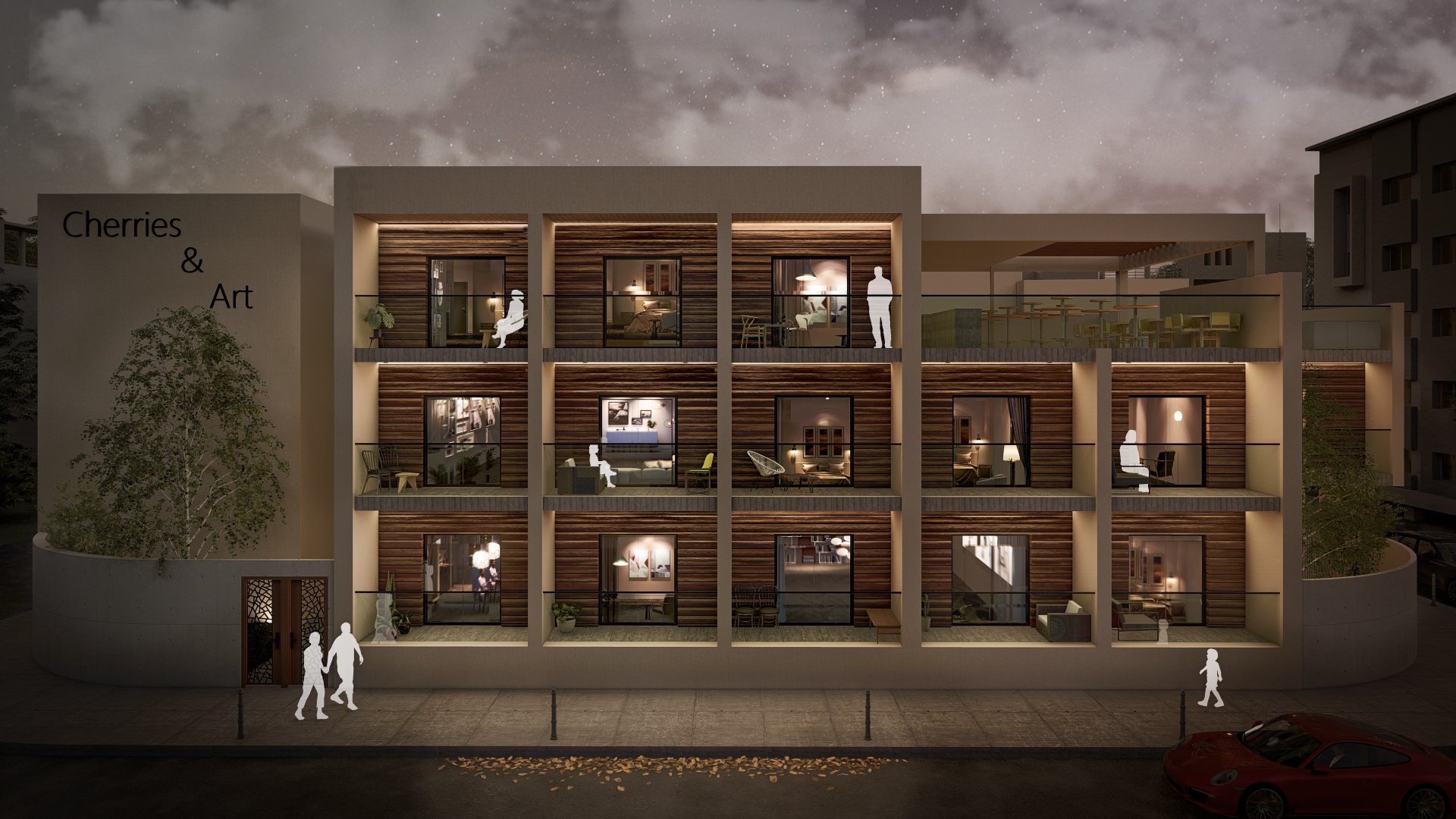 Overall, Cherries & Art embodies our philosophy of creating urban student residences that combine comfort with city living and foster an environment that enhances creativity and a sense of community.