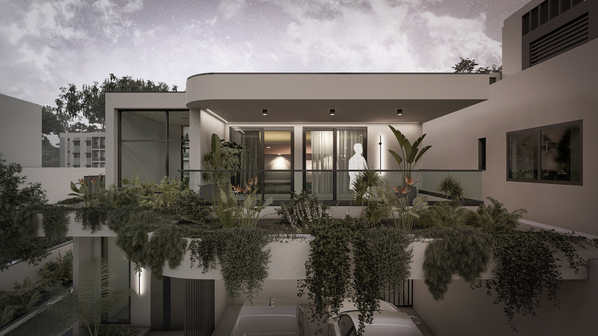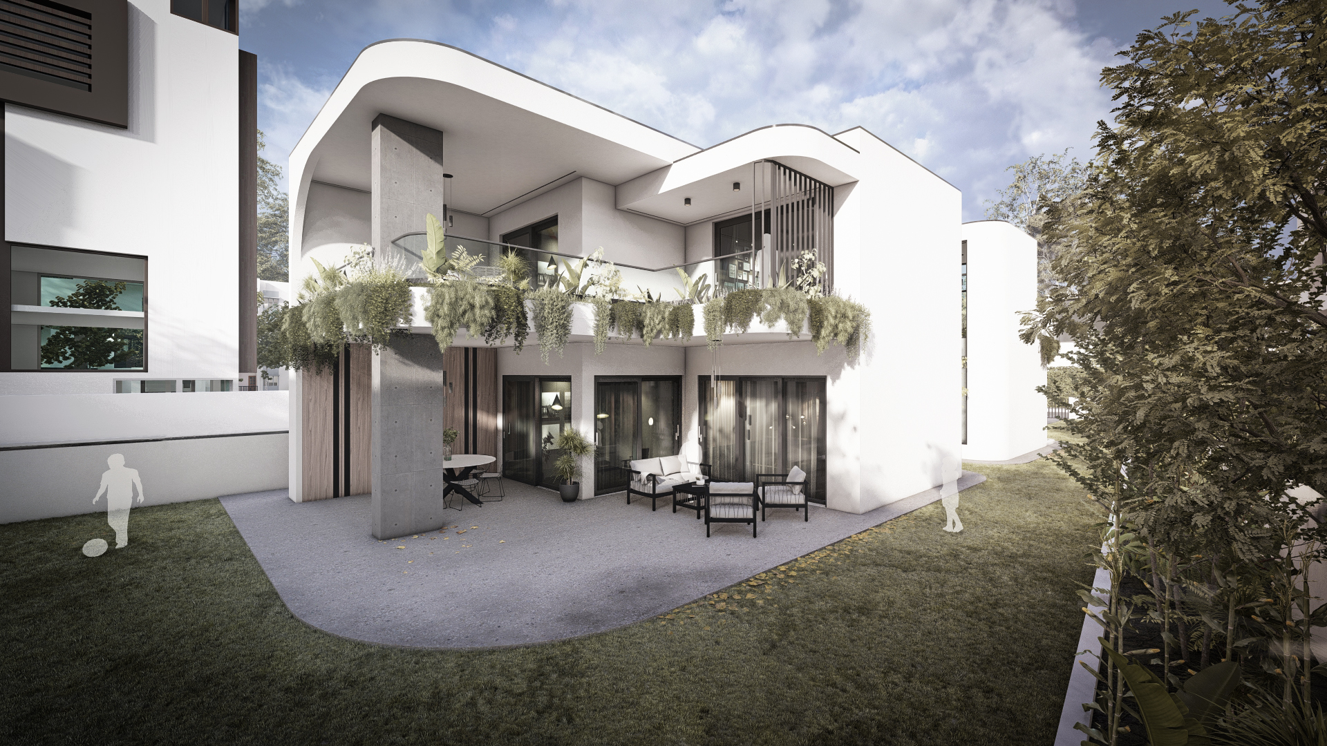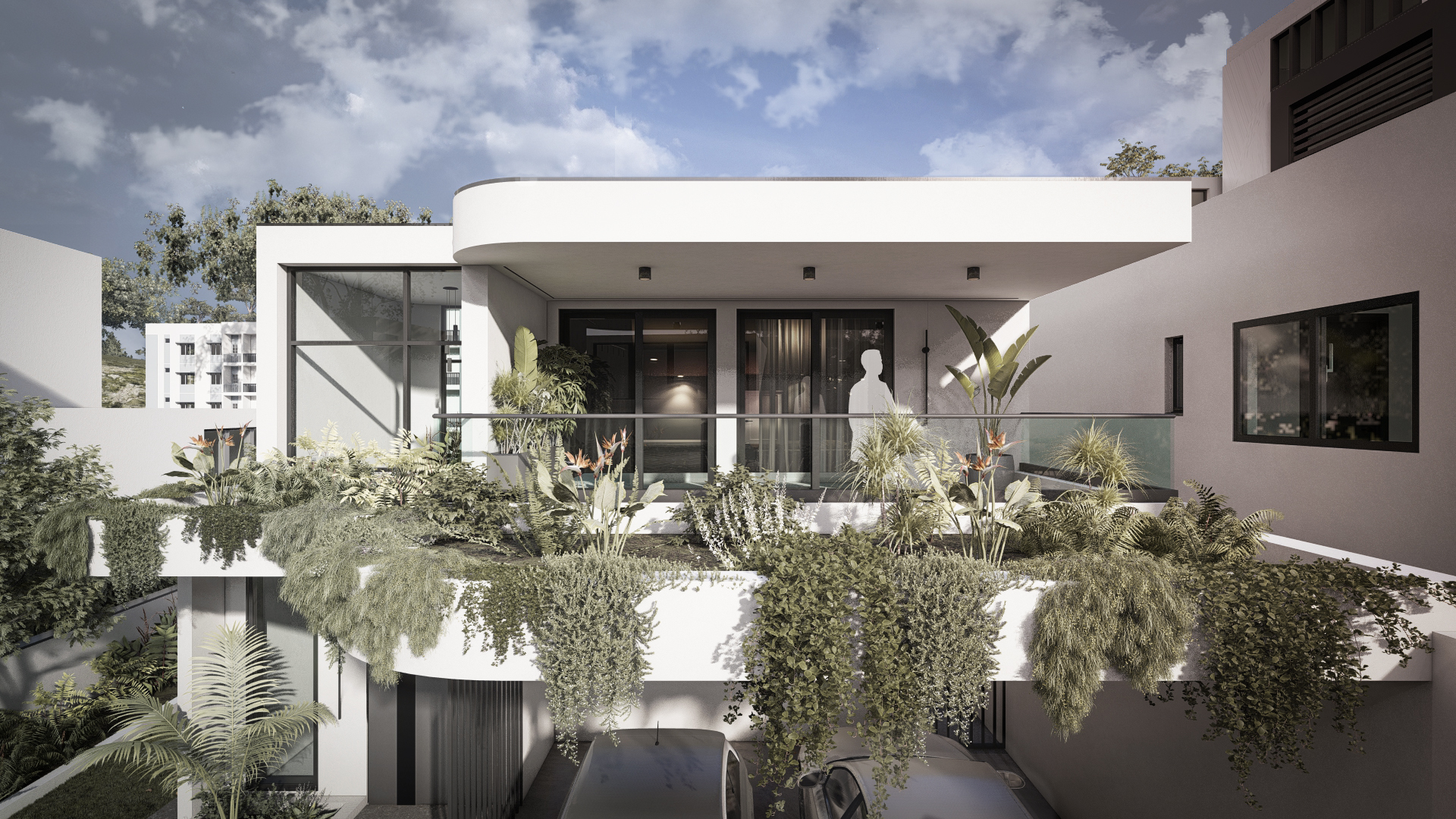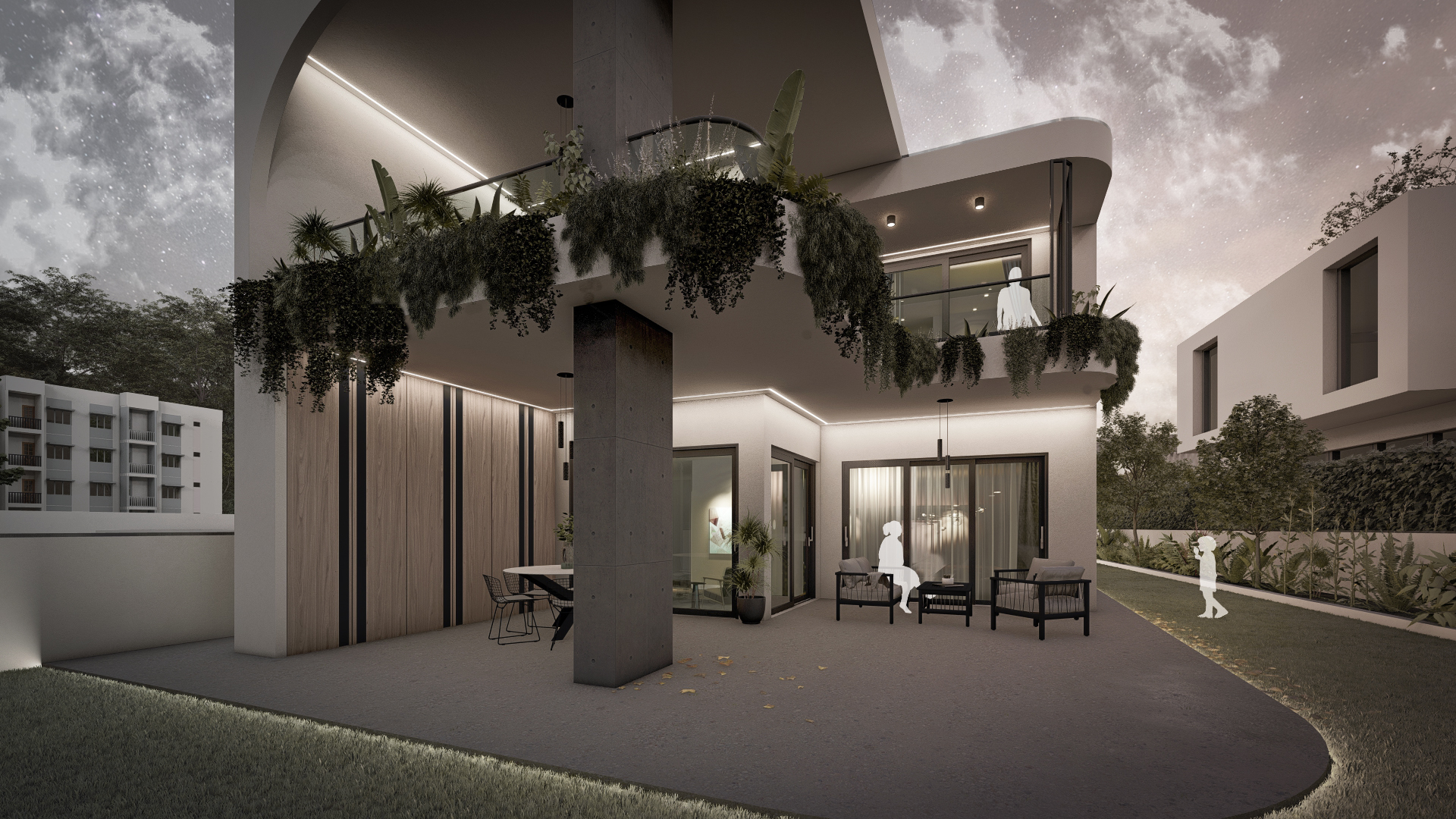 Our main focus in the pre-development phase of 0525 was to bring to life the most beautiful aspects of modern Mediterranean living, take advantage of the ample sunshine hours, and prioritize Cypriot architecture. To this effect, we created a space where clean volumes meet soft curvature, keeping the building grounded but open, creating light and space through layered façades in the design. The house’s defining feature is arguably the sculptural rooflines and the rounded terraces, which add movement and energy to the building as it becomes a space for light and nature to take shape.