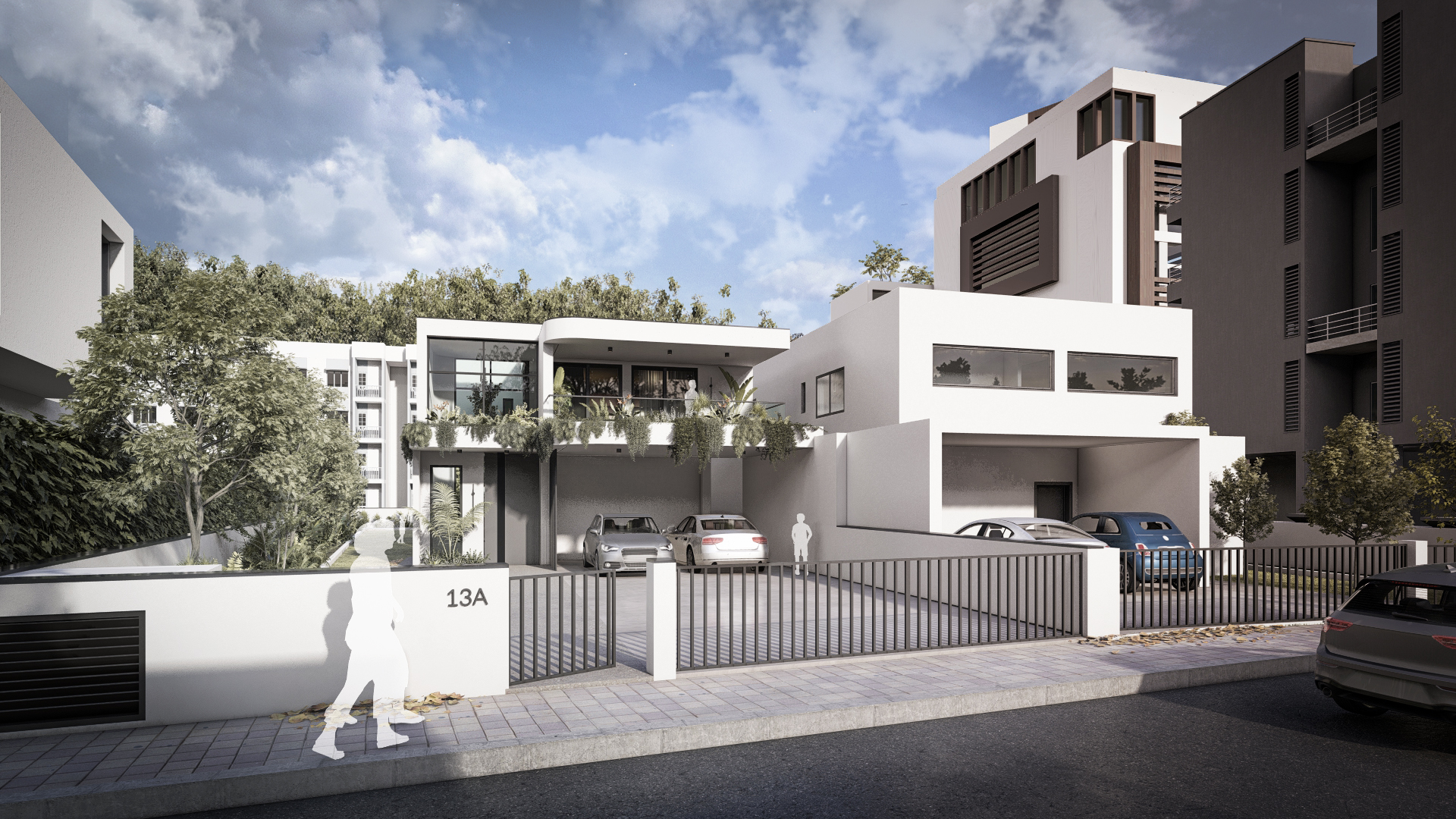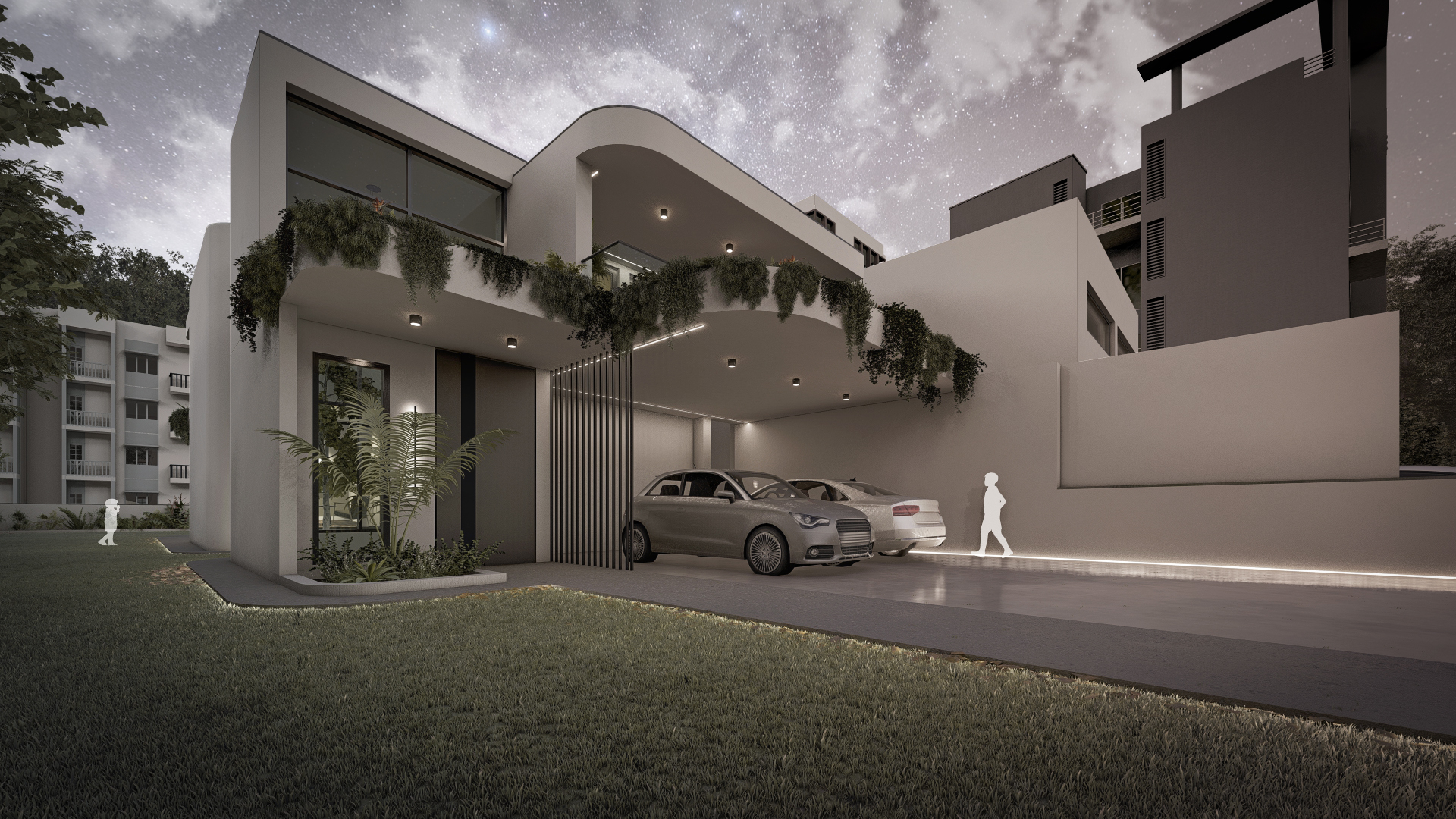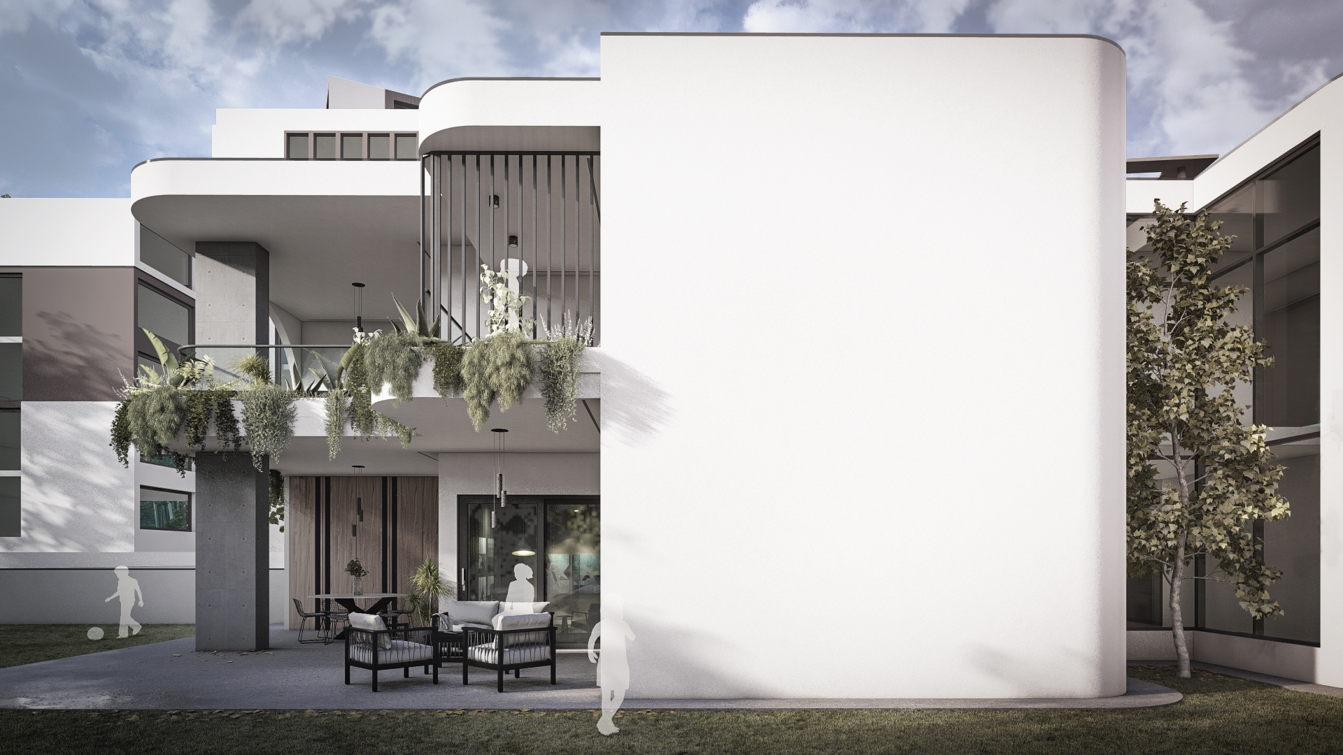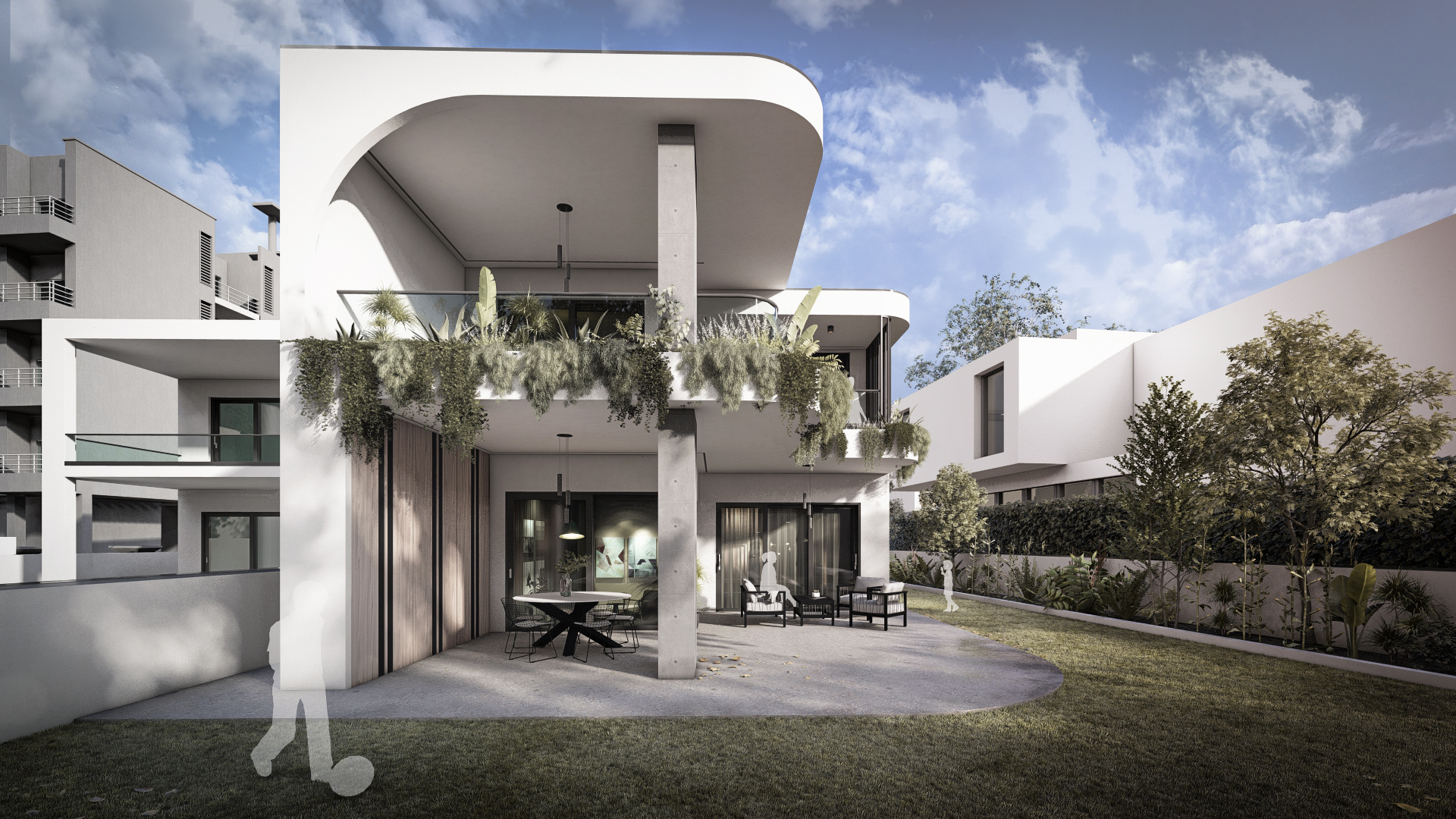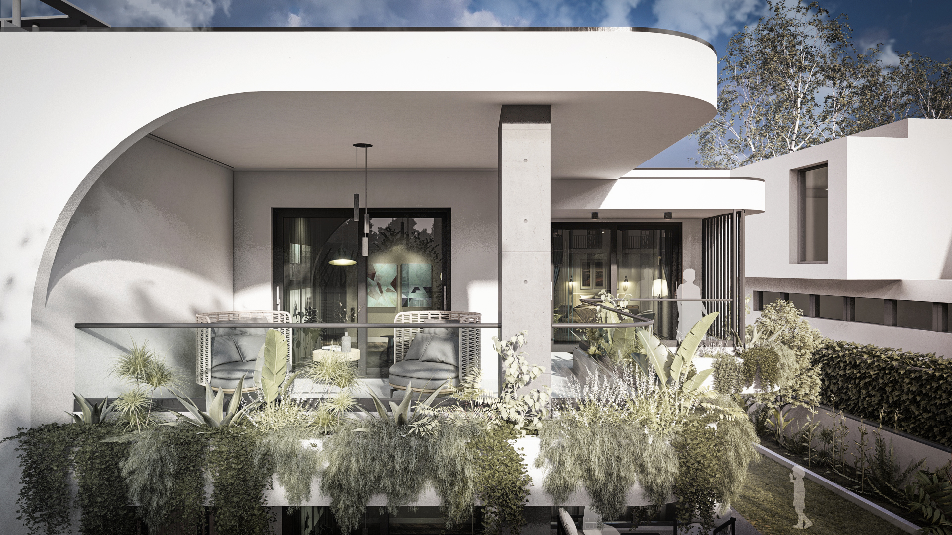 Our main focus in the pre-development phase of 0525 was to bring to life the most beautiful aspects of modern Mediterranean living, take advantage of the ample sunshine hours, and prioritize Cypriot architecture. To this effect, we created a space where clean volumes meet soft curvature, keeping the building grounded but open, creating light and space through layered façades in the design. The house’s defining feature is arguably the sculptural rooflines and the rounded terraces, which add movement and energy to the building as it becomes a space for light and nature to take shape.