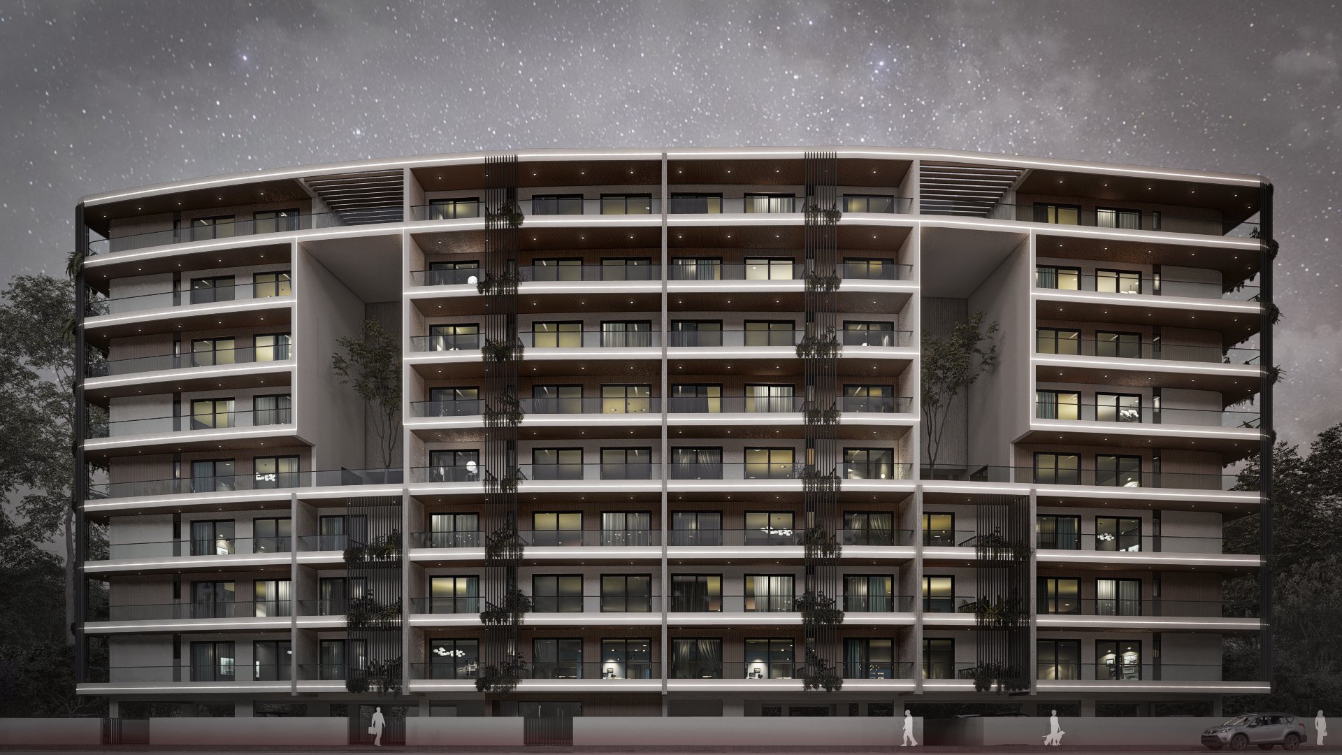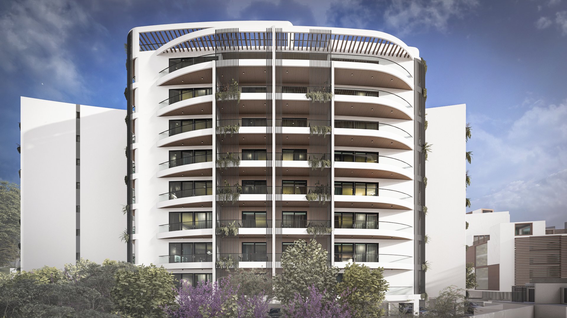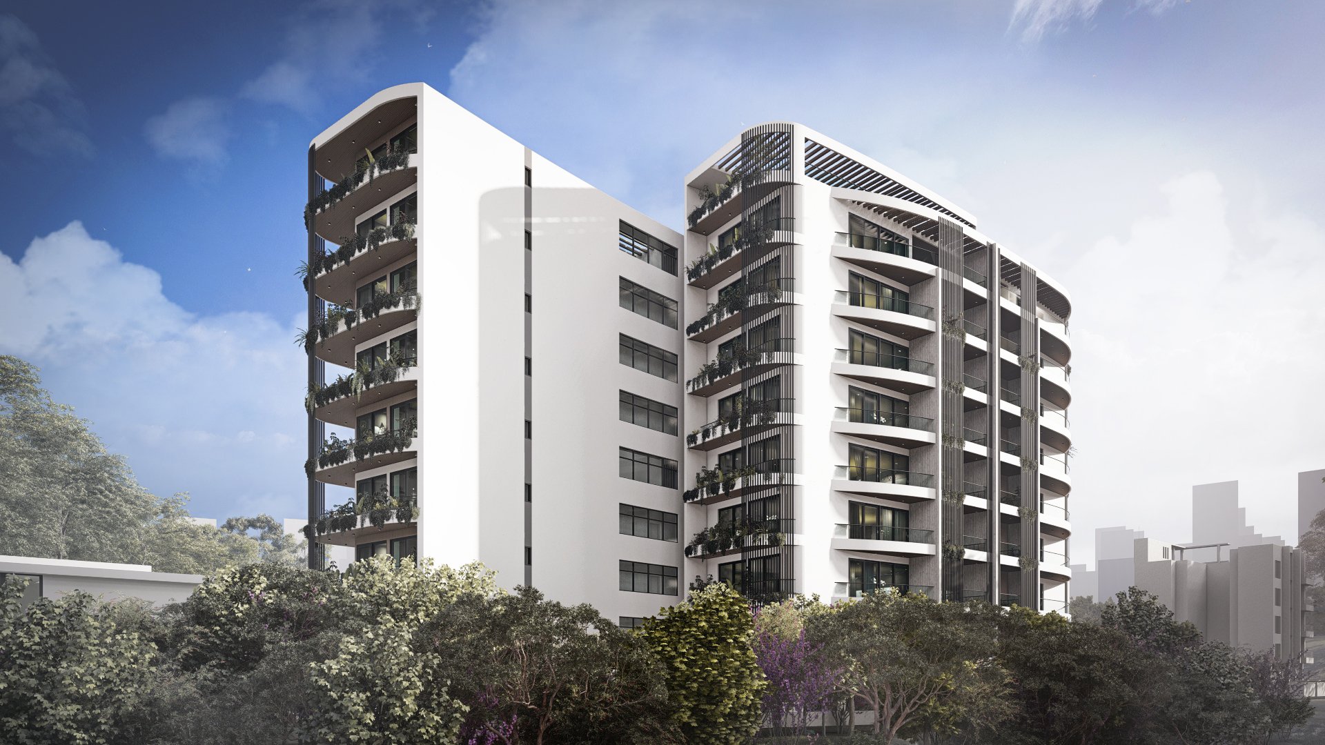 Aptly named for its grand scale, the Ark is a large-scale residential development with a beautiful curved façade that softens the building’s mass and avoids a stiff or rigid presence. Instead, the design reads as light and flowing, helped by the deep and staggered balconies which also host vertical gardens.