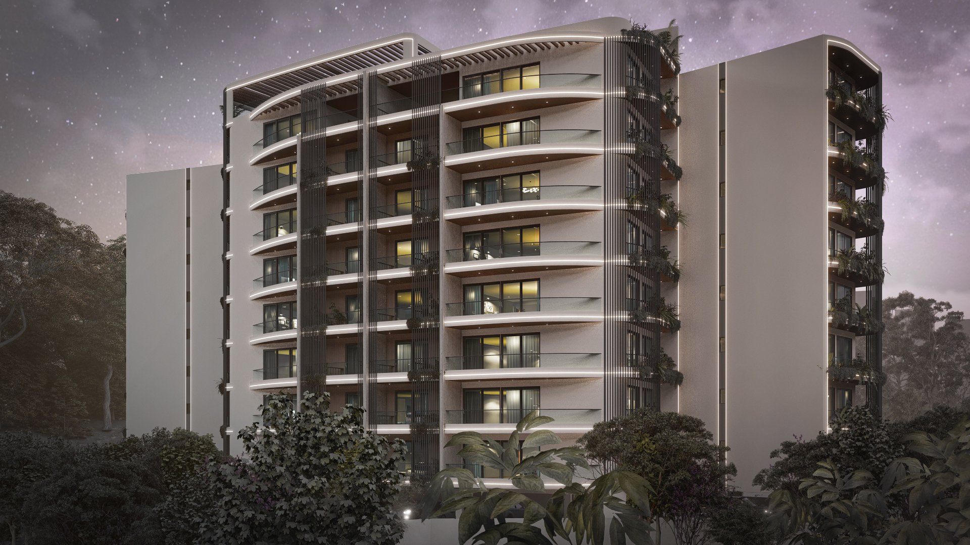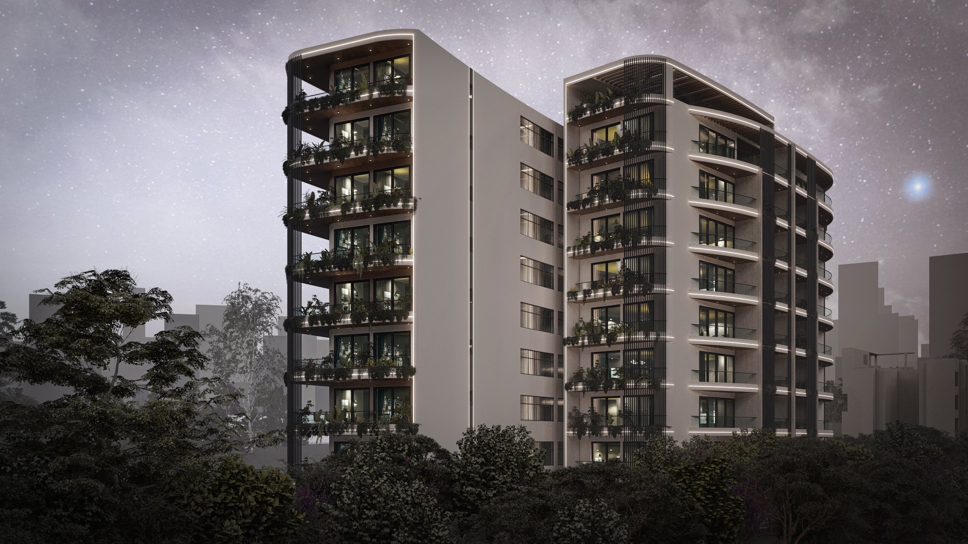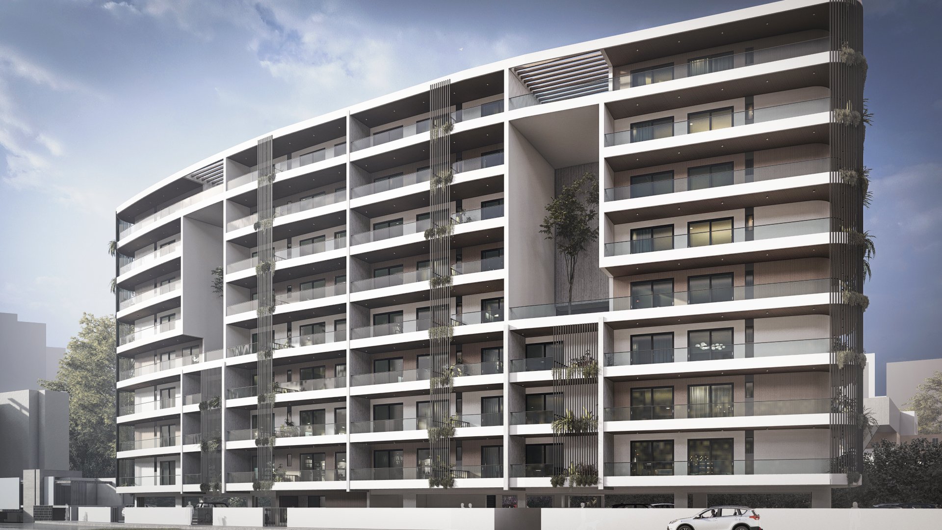 Aptly named for its grand scale, the Ark is a large-scale residential development with a beautiful curved façade that softens the building’s mass and avoids a stiff or rigid presence. Instead, the design reads as light and flowing, helped by the deep and staggered balconies which also host vertical gardens.